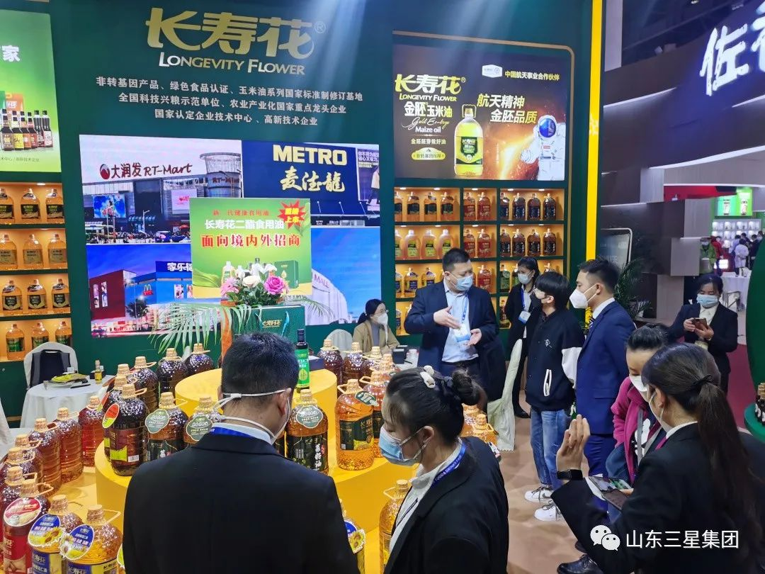 走進(jìn)長(zhǎng)壽花食品展區(qū),“長(zhǎng)壽花開(kāi)”門(mén)景醒目,黃綠色調(diào)清新宜人,長(zhǎng)壽花食用油、調(diào)味品及糧食產(chǎn)品全線亮相,吸引往來(lái)客商駐足洽談。參展期間,長(zhǎng)壽花2022新一代健康食用油——甘油二酯食用油首發(fā)亮相,面向境內(nèi)外招商,“營(yíng)養(yǎng)健康,輕酯減負(fù)”的產(chǎn)品特性廣受關(guān)注、反饋熱烈。“箸下”調(diào)味品系列更是入駐調(diào)味直通車(chē)“糖酒會(huì)專(zhuān)場(chǎng)”,線上互動(dòng),氣氛活躍。